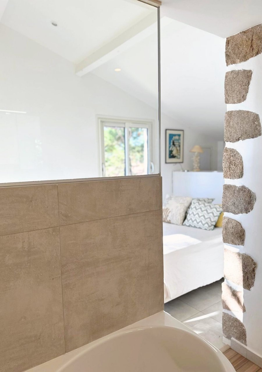 La Villa Benedettu est bien plus qu’une maison : c’est un refuge où le temps ralentit. Dès votre arrivée, l’odeur des pins, la douceur de la brise marine et la lumière qui traverse les baies vitrées vous enveloppent.