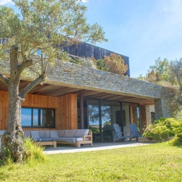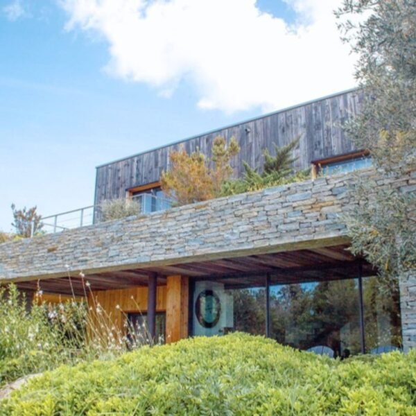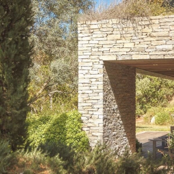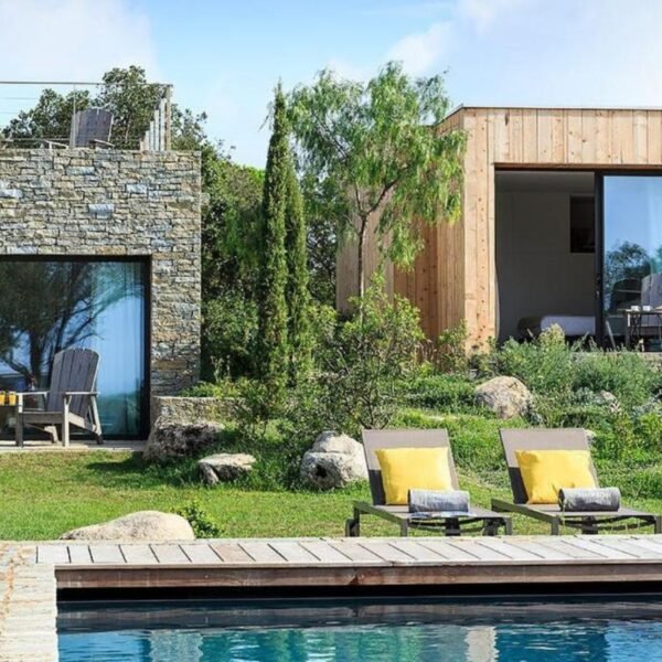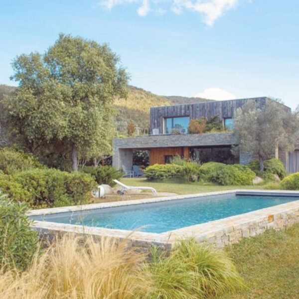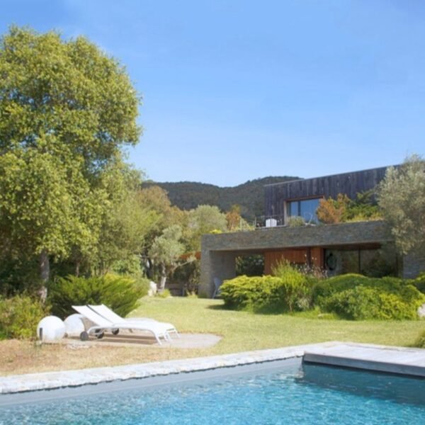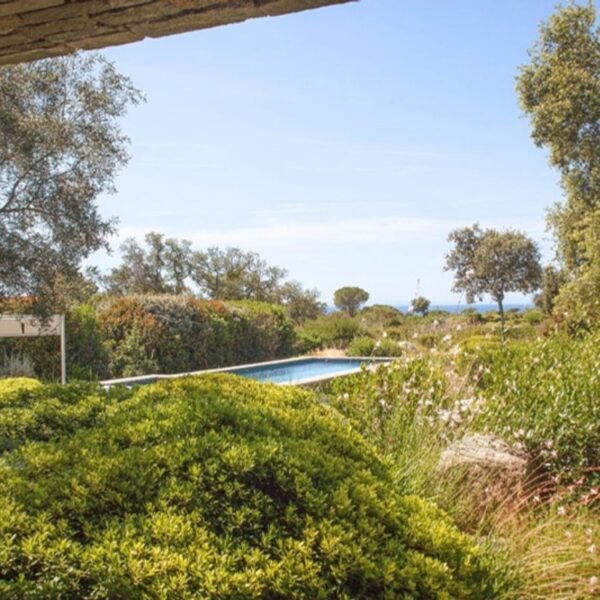 Dans un domaine privé et confidentiel, à proximité des plages de Palombaggia, villa d’architecte vue mer, d’une superficie de 160 m2, implantée sur un terrain de 3000 m2 entièrement clos et arboré.