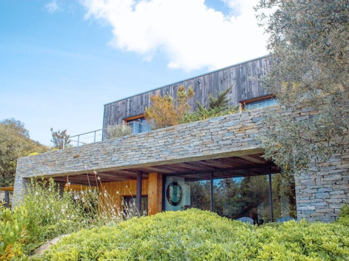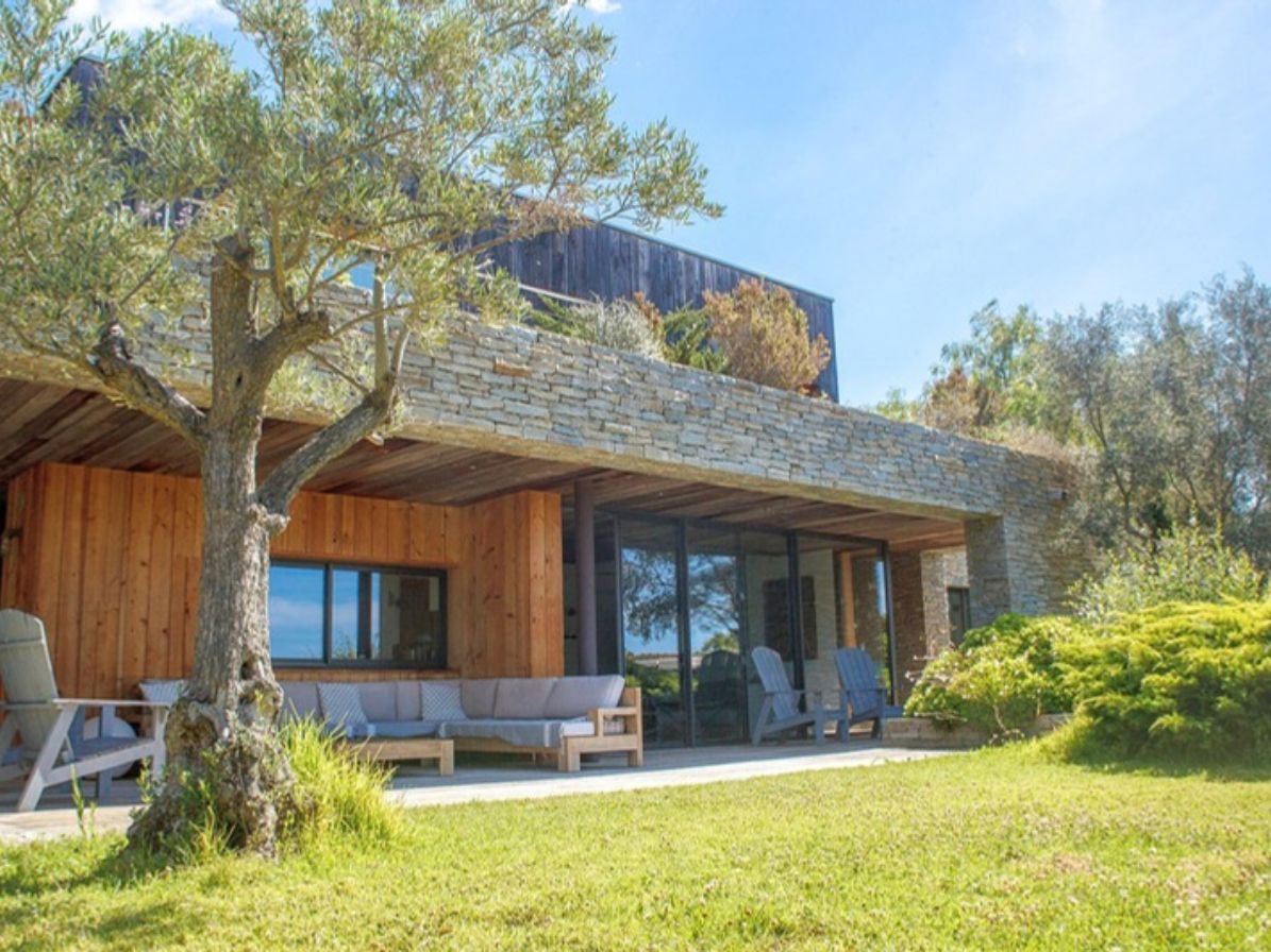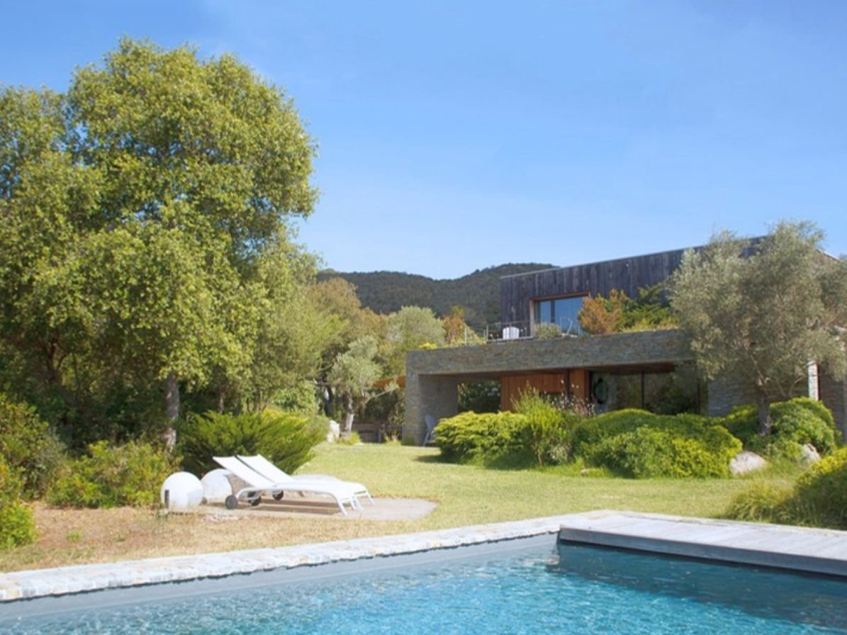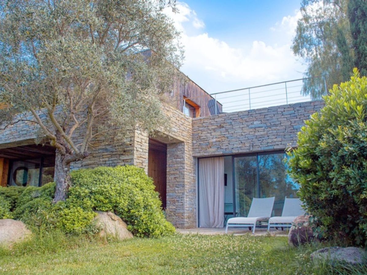Dans un domaine privé et confidentiel, à proximité des plages de Palombaggia, villa d’architecte vue mer, d’une superficie de 160 m2, implantée sur un terrain de 3000 m2 entièrement clos et arboré.