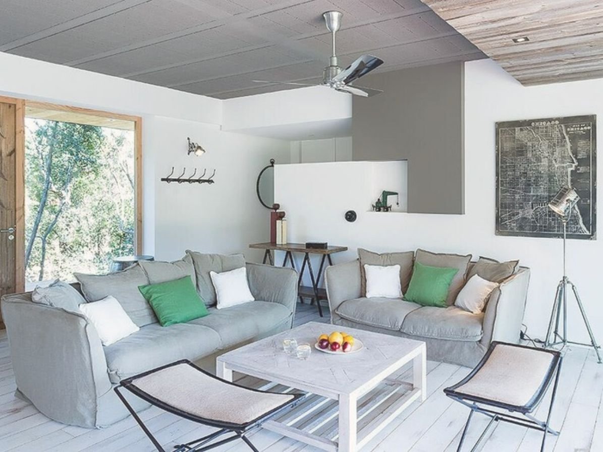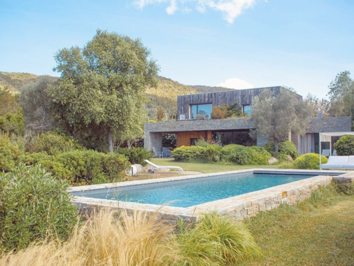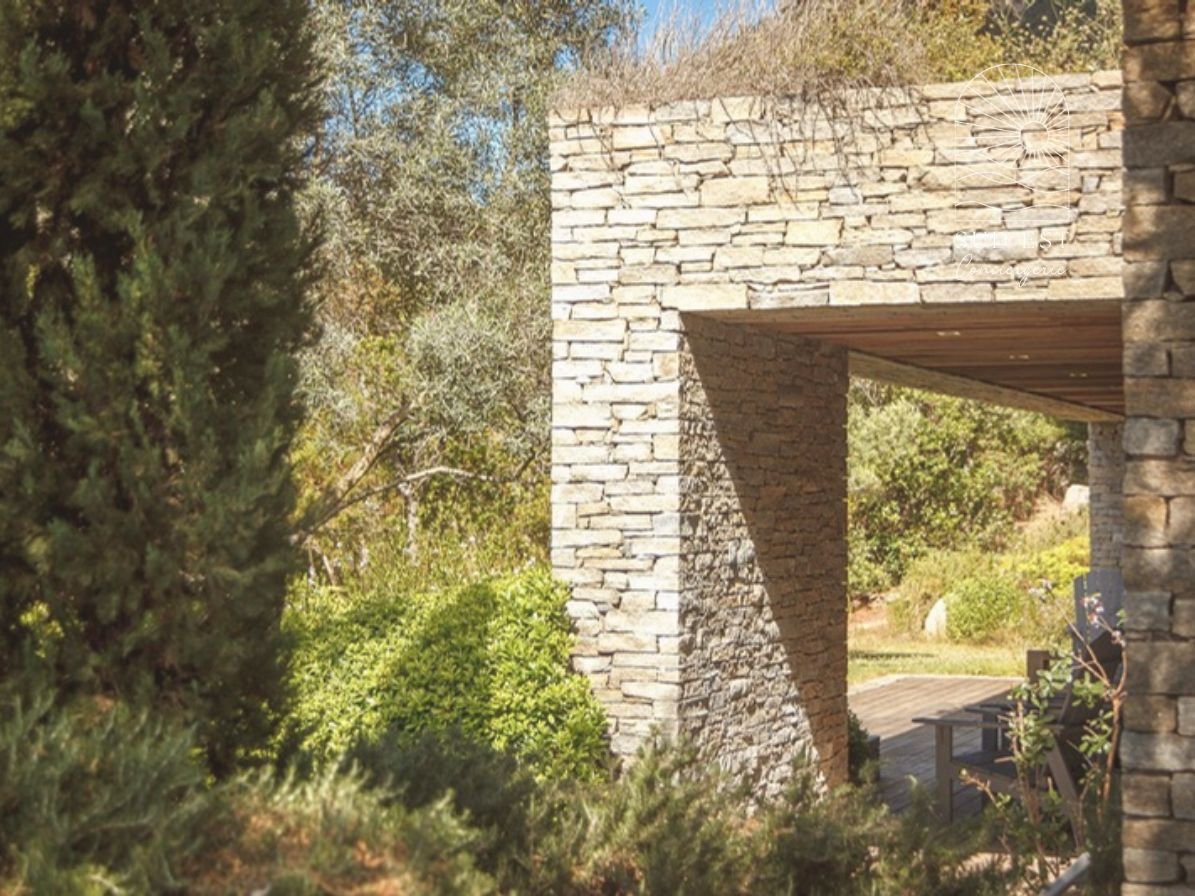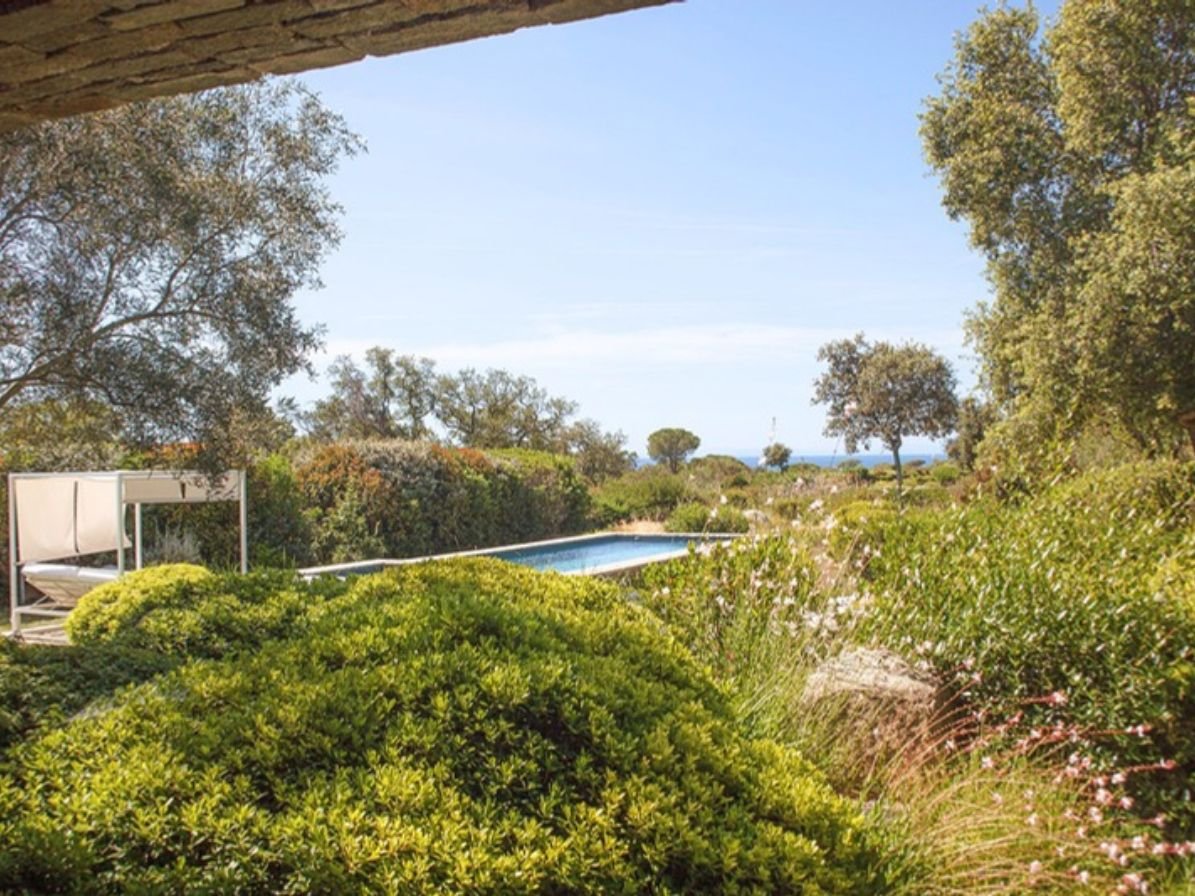 Dans un domaine privé et confidentiel, à proximité des plages de Palombaggia, villa d’architecte vue mer, d’une superficie de 160 m2, implantée sur un terrain de 3000 m2 entièrement clos et arboré.