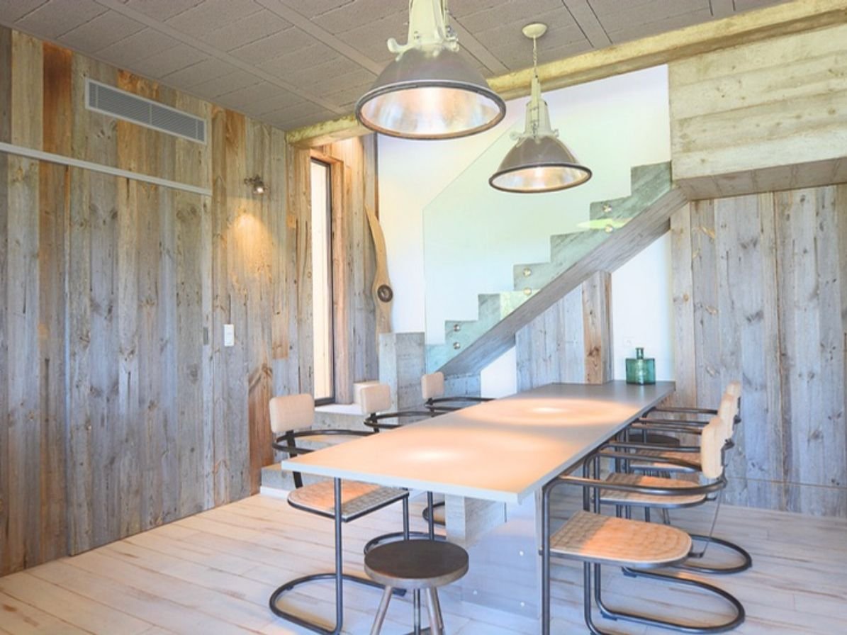 Grand séjour salon donnant sur terrasses couvertes avec coin repas, plancha et salon de jardin.